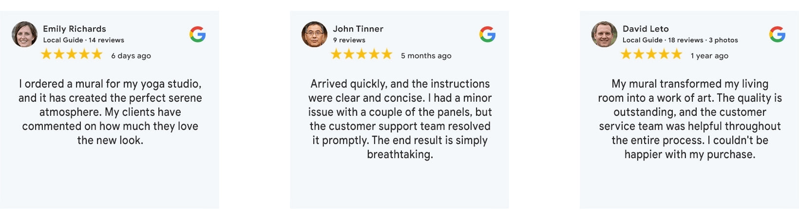 Yes, we recommend ordering a sample to ensure the design and color are right for your space. Our samples are available in A3 size and can be ordered online. We also offer previews of our wall murals, allowing you to see how the design will look in your room before making a purchase.