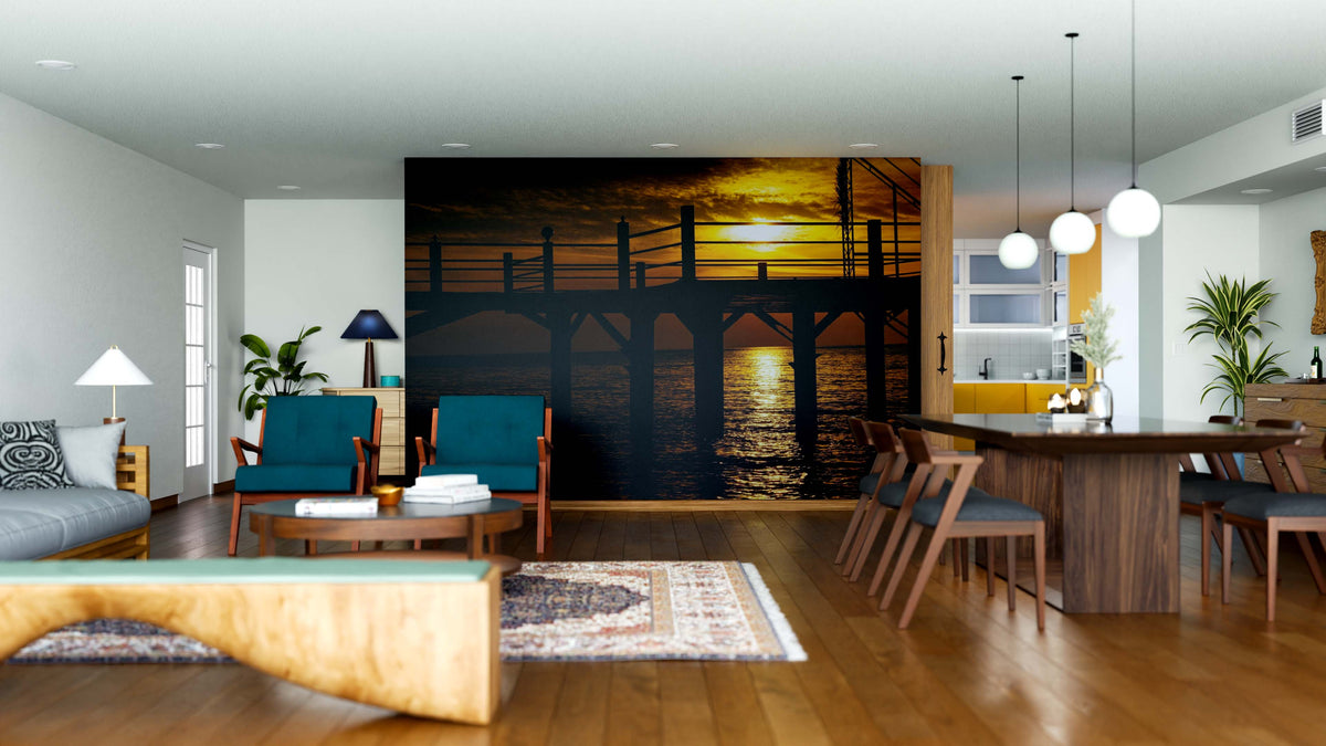 Silhouetted Pier Glow Mural